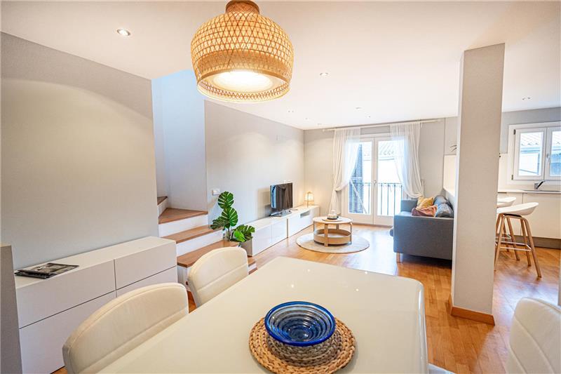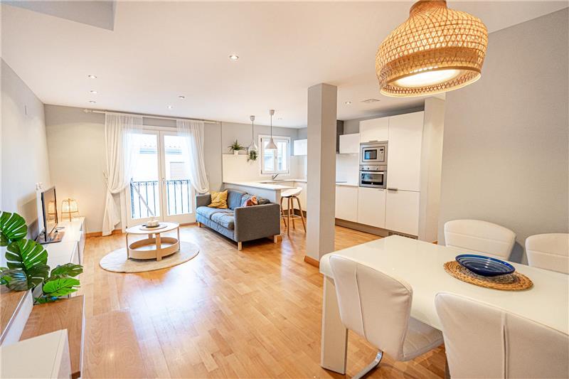 Amplio salón comedor con cocina incorporada amueblada y equipada, 2 dormitorios (1 doble), vestidor, armario, 2 baños, suelos de parquet, terraza en solárium, 1 plaza de garaje y trastero. Amueblado. Disponible en diciembre 25.