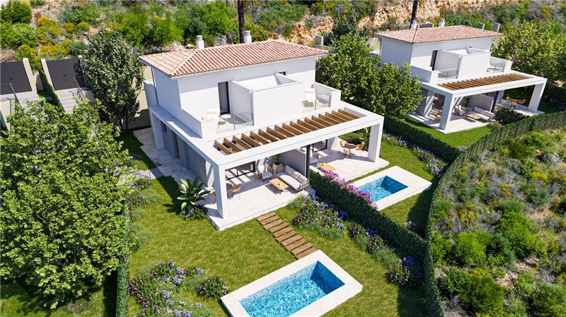 195 m2 construidos aprox., salón comedor, cocina amueblada con campana y placa de inducción, 4 habitaciones, 4 baños, 2 en suite, armarios, suelos porcelánicos, carpintería interior lacada, doble acristalamiento, aerotermia, aire acondicionado frío/calor, terrazas, jardín de 313 m2 aprox., piscina y jardines comunitarios. Fecha de entrega aproximada primer trimestre 2026.