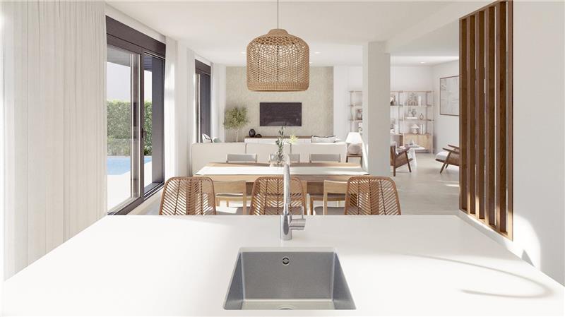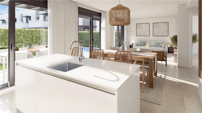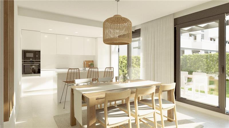 148,90m2 aprox., amplio salón comedor con cocina integrada amueblada y equipada, coladuria, 4 habitaciones dobles, armarios, vestidor, 3 baños (1 en suite), aseo, suelos de gres porcelánico y laminado, climalit, persianas motorizadas, suelo radiante, aire acondicionado por conducto, terrazas, jardín, solarium, 2 plazas de parking, piscina.