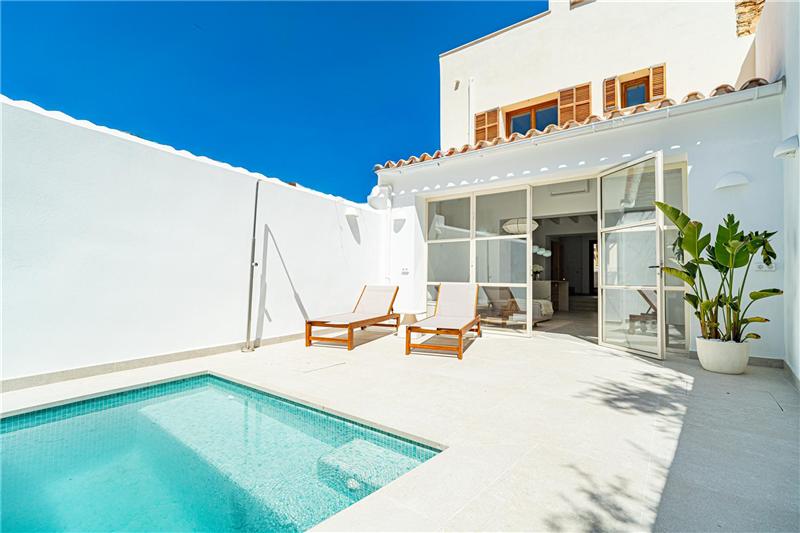 Chalet adosado de diseño con piscina, 244m2 aprox., hall de entrada, amplio salón comedor muy luminoso de unos 25m2 aprox. con grandes ventanales y vistas al patio privado con piscina, cocina abierta amueblada y equipada, 4 dormitorios dobles, armarios, 4 baños en suite, calefacción por suelo radiante, aire acondicionado frío- calor, terraza con piscina privada, 1 plaza de garaje, trastero y estudio independiente. Totalmente renovado con estilo moderno. Certificado energético B.