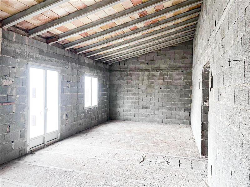 194m² aprox., salón comedor de 30m2 aprox., cocina, lavandería, patio. 3 dormitorios, 2 baños. Edificación levantada, pendiente de acabados; gran espacio diáfano con 3 ventanas a la calle, 2 estancias adicionales (una a calle, otra a patio interior). Garaje + almacén (45–50 m² aprox.) con acceso posterior y terraza superior comunicada con el primer piso. Posibilidad de 2 viviendas independientes o vivienda unifamiliar amplia. Entradas independientes. Estructura en buen estado. A reformar. Luz y agua dadas de alta. Orientación sur. Necesita actualizar.