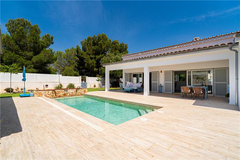 Estancias generosas con techos altos y vigas vistas, salón comedor amplio con moderna cocina integrada amueblada y equipada, 3 dormitorios dobles con armarios, 3 baños (2 en suite), un despacho. Materiales de calidad, aislamiento fónico y térmico, climatización central por aerotermia, suelos porcelánicos, grandes ventanales con doble acristalamiento. Zona exterior: porches, jardín amplio, piscina con cascada, casa de invitados: salón - dormitorio y baño. Ubicado en una zona con absoluta tranquilidad y privacidad. Calificación C