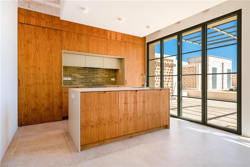 210m² aprox. luminoso salón comedor con chimenea, cocina amueblada abierta con isla, coladuria, 3 dormitorios dobles, armarios empotrados, 3 baños (2 en suite), suelos de gres porcelánico, calefacción central, suelo radiante, aire acondicionado frio/calor, balcón, terraza, jardín, piscina, trastero, plaza de garaje, vistas despejadas a la Sierra de Tramuntana. Posibilidad de construir un estudio independiente de 25m2 aprox.